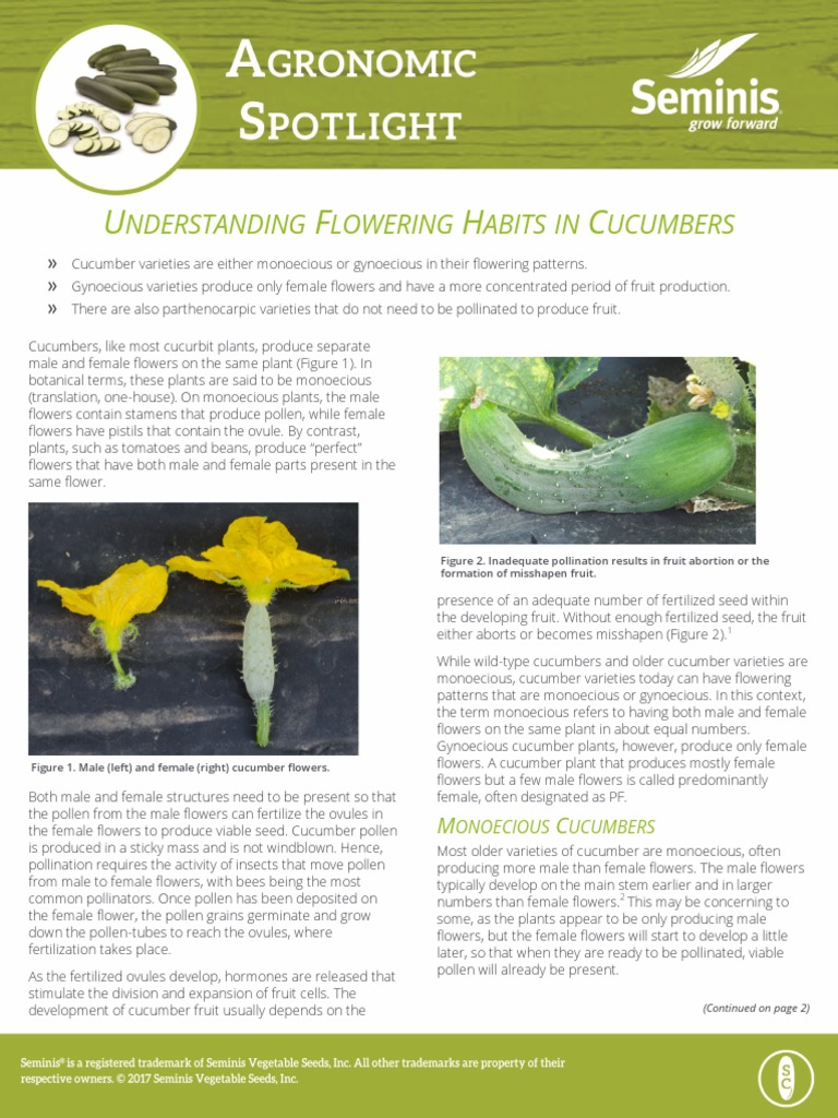 Most plants sprout bisexual flowers (which have both male and female parts), but plants like flowers with all male or all female parts are called imperfect (cucumbers, pumpkin and melons).